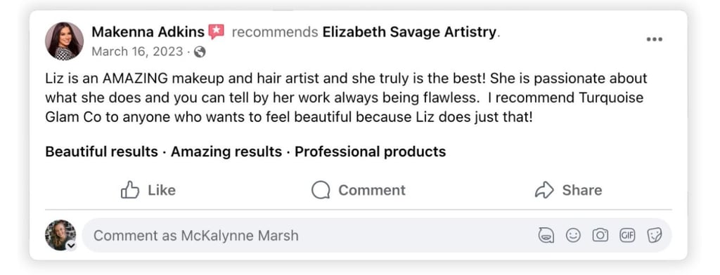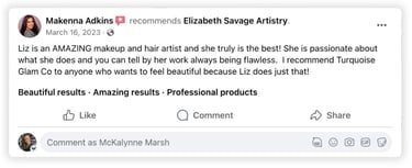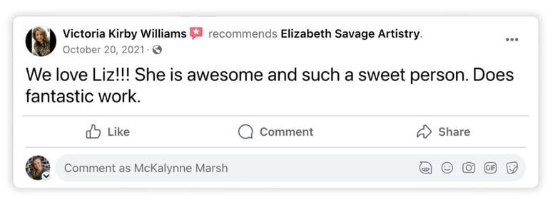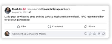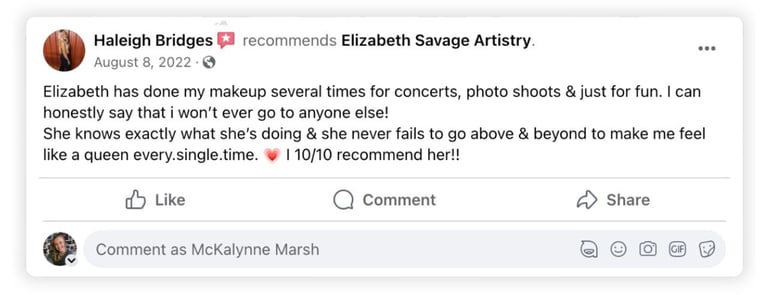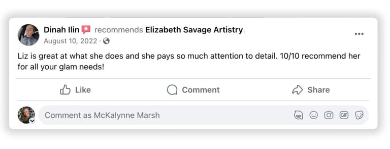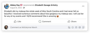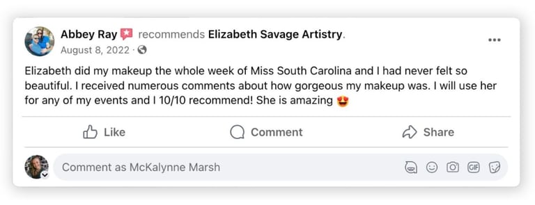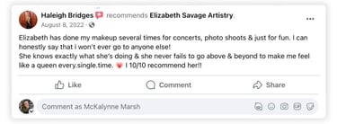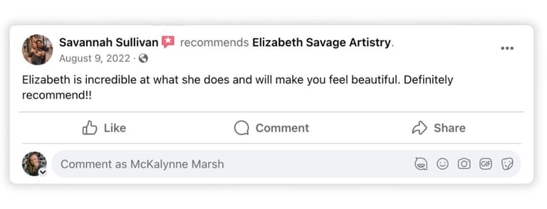 and I own Elizabeth Savage Artistry. My mission is to enhance your beauty and make you feel as beautiful as you already are."