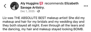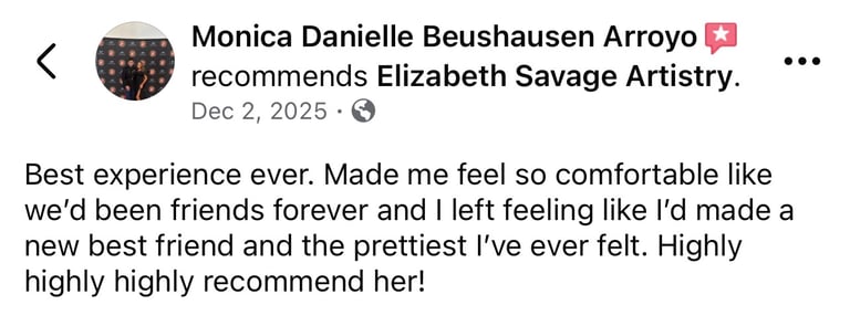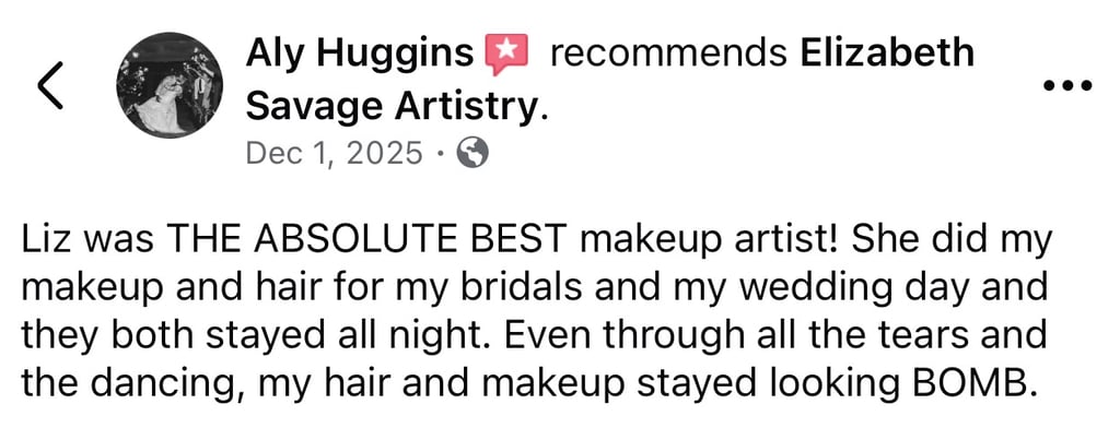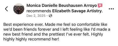 and I’m the owner of Elizabeth Savage Artistry. My love for hair and makeup began back in high school—an obsession that only grew stronger with time. After graduating from Esthetics school in 2020, I knew I wanted to add hair services to my list of skills, so I continued my education by attending Cosmetology school in 2022.